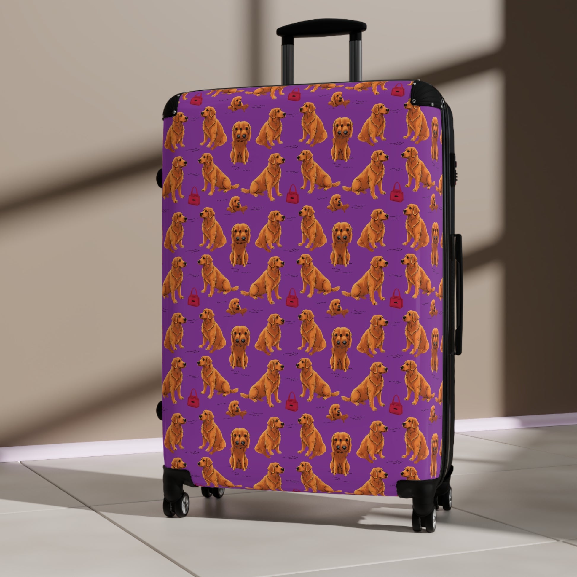 "Golden Retrievel" Pattern Travel Suitcase - Reinforced Lightweight Super Durable, Vacation Essential, Dog Theme Travel Gear